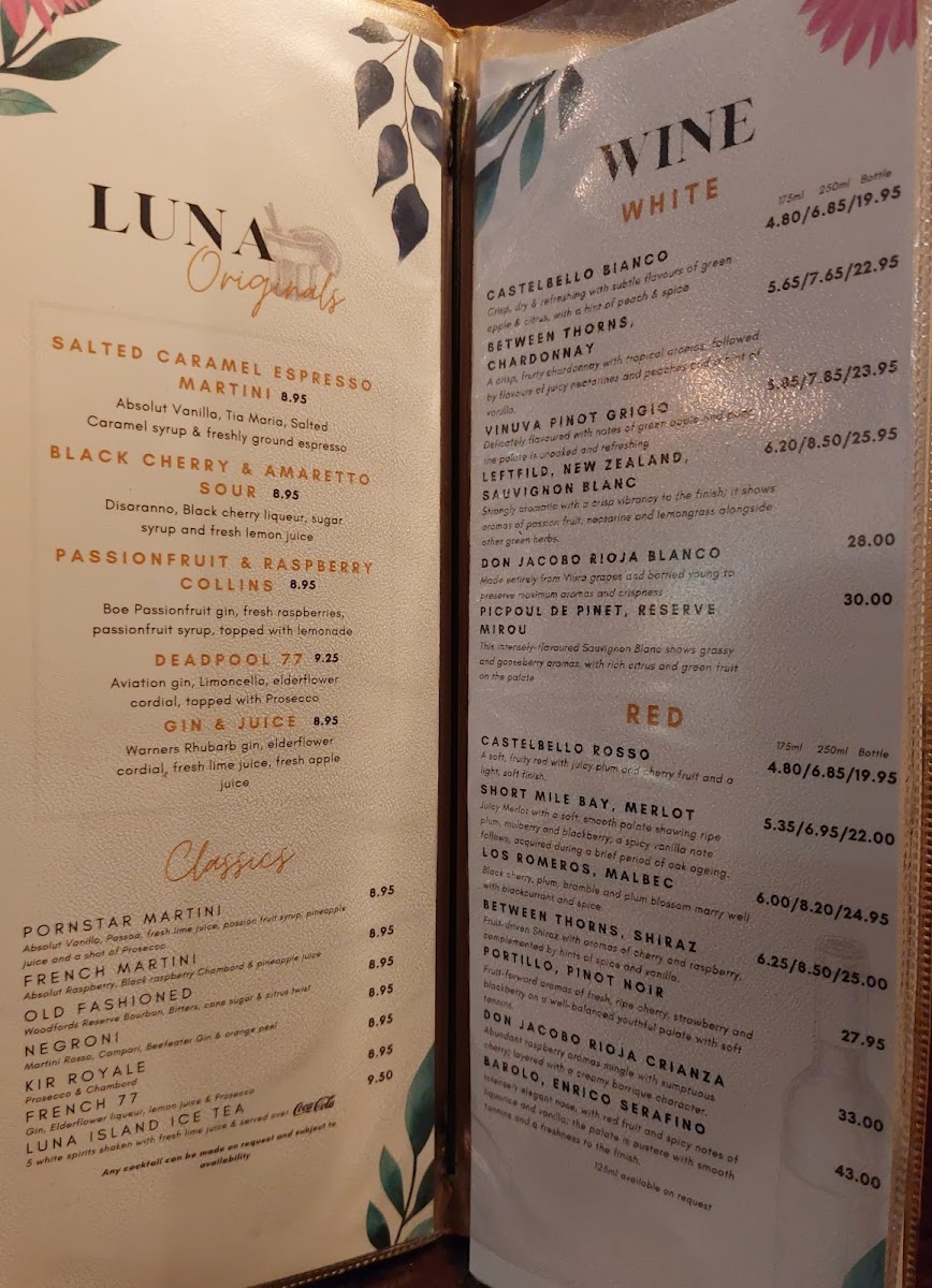 The menu at LunaBlu offers an enticing selection that caters to every palate. Highlights include a fresh feta, pepper, and olive salad paired with indulgent skin-on fries, as well as a delightful new potato, green bean, and pesto salad. Their cocktails are equally innovative, with a standout sparkling raspberry rhubarb drink served in elegant cut glass tumblers.